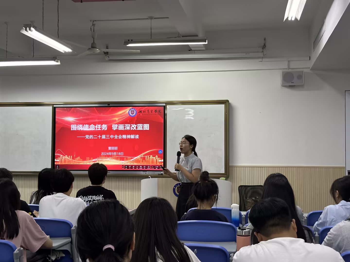 9月18日晚,中国·yl6809永利集团教师董丽丽走进会计学院学生党支部,为全体党员学生带来了一场生动而深刻的党的二十届三中全会精神宣讲活动。