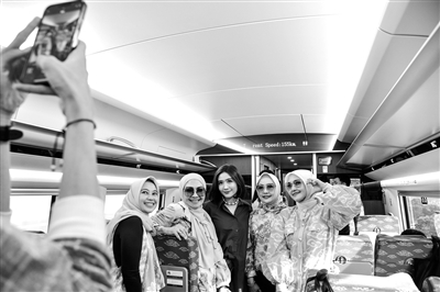 ③10月17日,印度尼西亚雅万高铁正式开通运营,乘客在行驶中的雅万高铁高速动车组列车车厢内拍照。新华社发