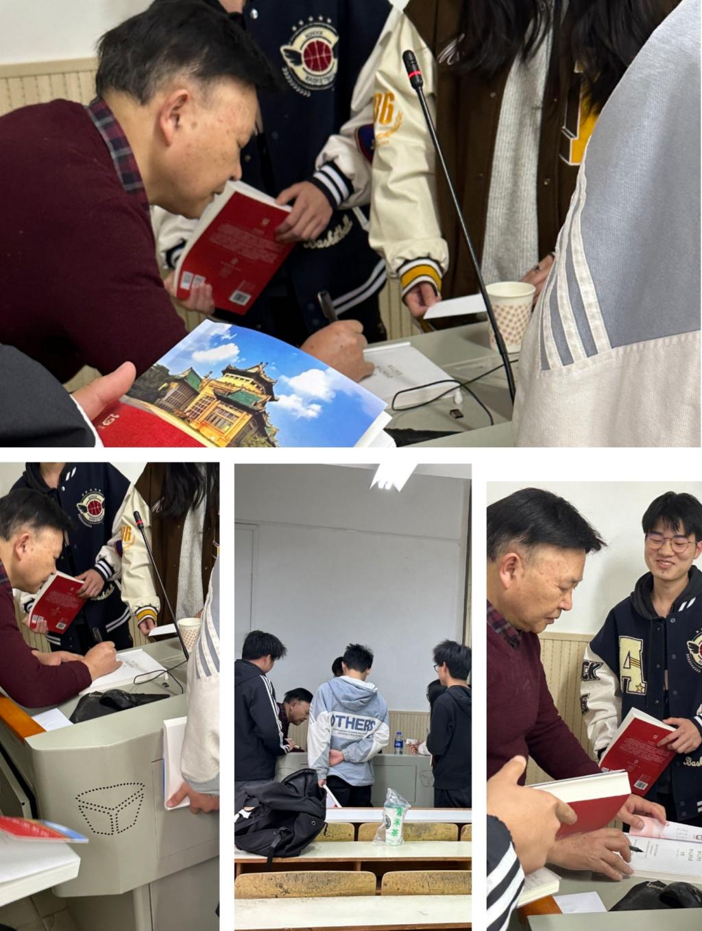 据悉,本课程教材《中国精神导引》由左亚文教授主编,课后,有许多学生慕名拿着教材找左亚文教授签名,左教授兴致勃勃一一签名,并写上励志话语激励学生。
