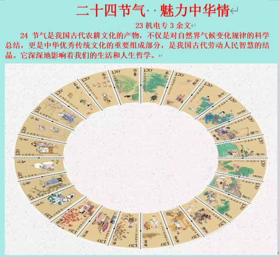 “春雨惊春清谷天,夏满芒夏暑相连,秋处露秋寒霜降,冬雪雪冬小大寒……”。寒假期间,为弘扬中华优秀传统文化,切实增强学生对非物质文化遗产的保护意识,中国·yl6809永利集团党支部积极开辟第二思政课堂,开展了“知节气、习文化、悟做人”主题征文活动,吸引了广大学子参与,呈现出浓厚兴趣。通过对节气文化内涵的挖掘,深深感受到了传统文化魅力,达到了“节气育人 以文化人”的全新目的。