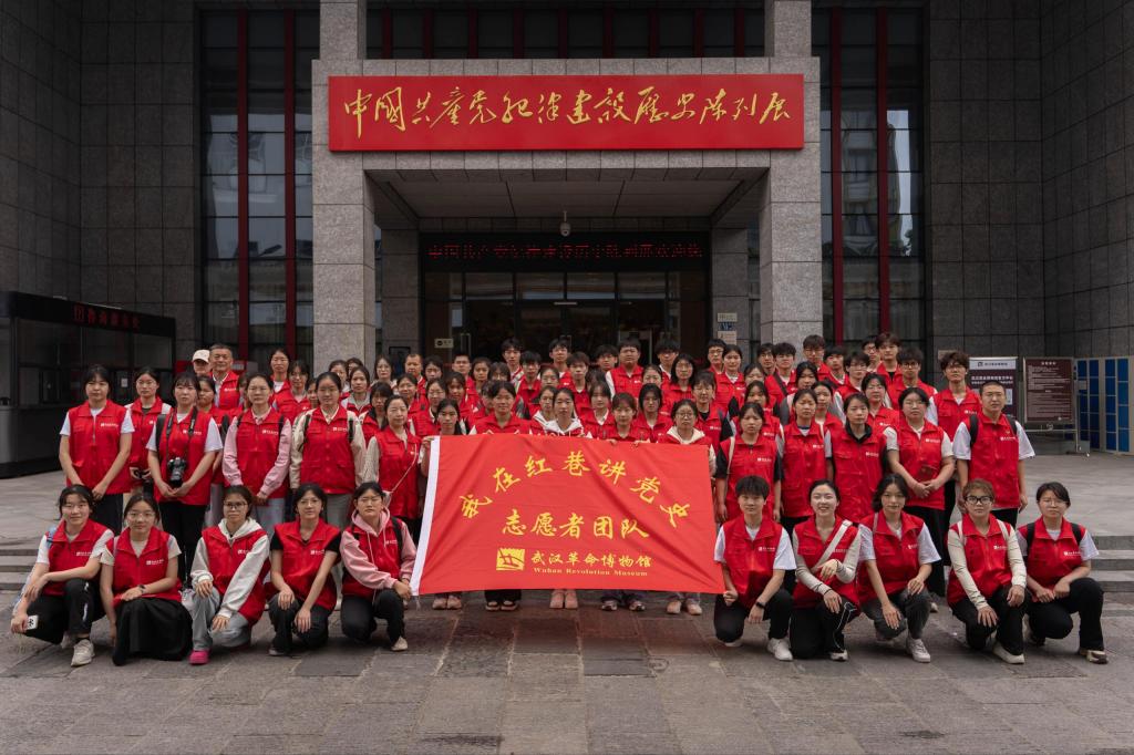分享环节结束后,志愿者们进行了合影留念,留下了这难忘的一刻。随后,红巷苗苗和志愿者们进行了示范讲解。他们的讲解生动有趣、深入浅出,让在场的每个人都仿佛穿越到了那段波澜壮阔的革命岁月,深刻感受到了革命先烈的英勇事迹和崇高精神。