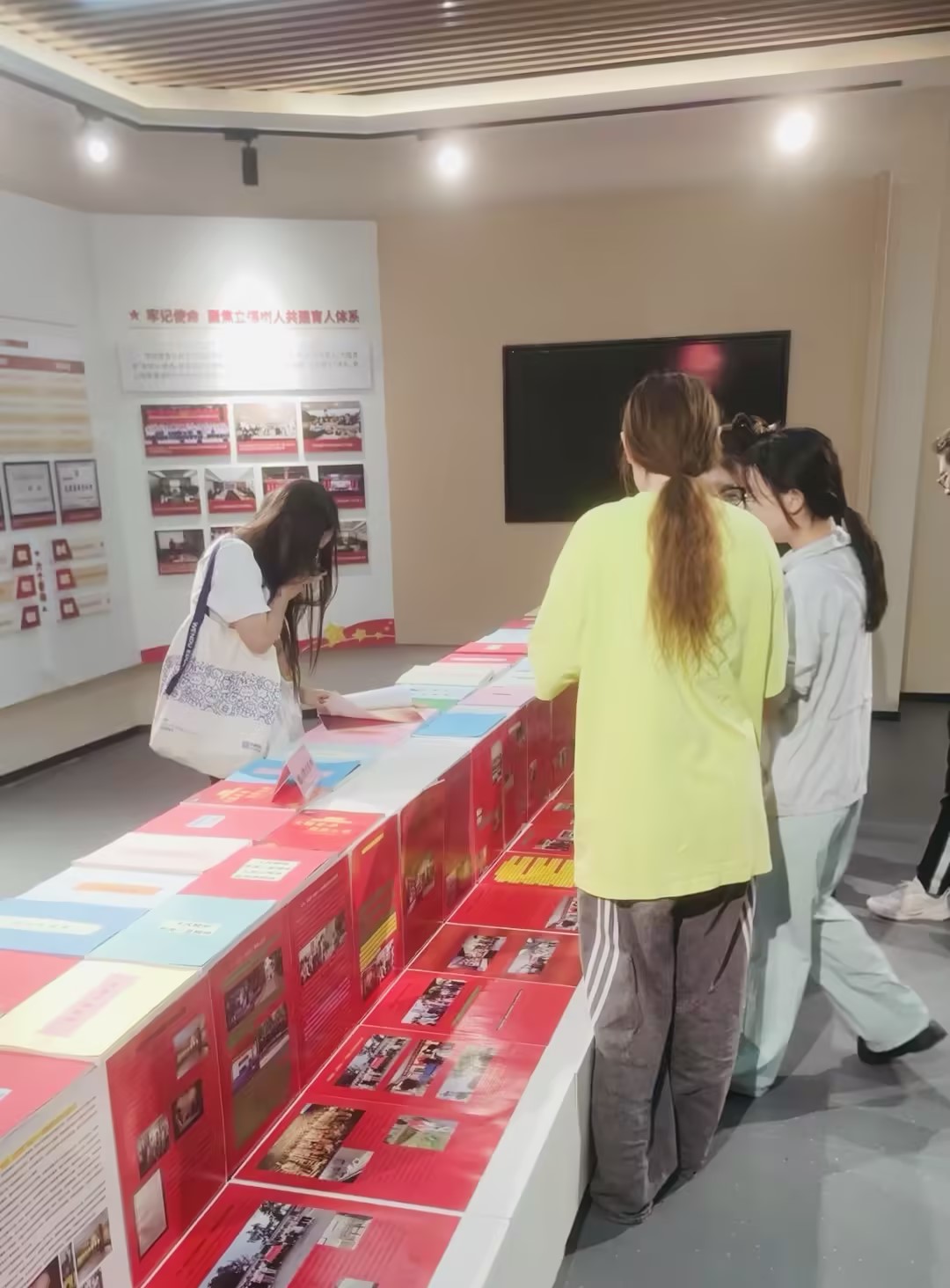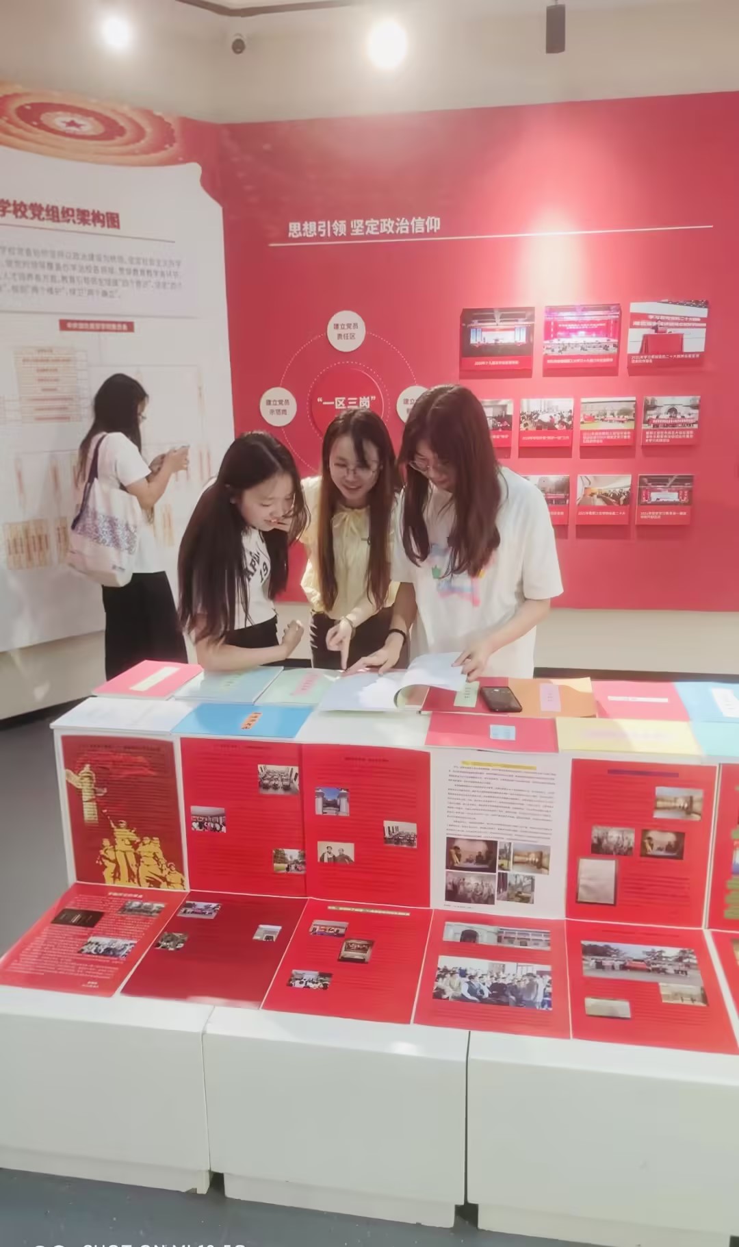 在孔波的引领下,师生们共同参观了校史馆内的思政展览。展览内容丰富,不仅展示了学院的发展历程和师生风采,还通过图文并茂的形式,生动讲述了党的历史和红色故事。师生们纷纷表示,通过参观展览,他们深刻感受到了红色文化的魅力,也更加坚定了学习马克思主义、传承红色基因的决心。