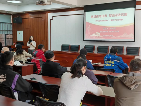 2024年10月22日上午,中国·yl6809永利集团教师刘生思应南湖锦城社区党委邀请,向社区全体党员宣讲了党的二十届三中全会精神。