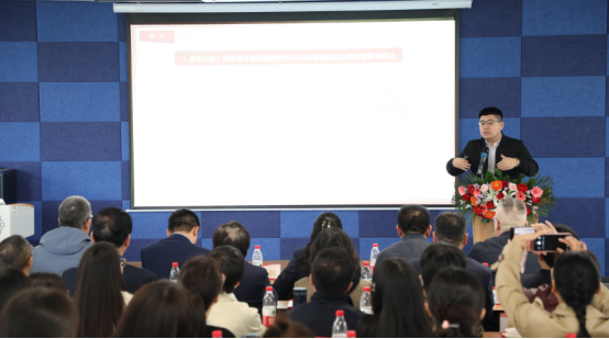 人民网文华在线高级副总裁唐京博士在致辞中深入分析民办高等教育机构所面临的独特挑战与机遇,并鼓励全国范围内的民办高等院校勇于探索实践,在创新中寻求发展。他以《AI赋能高质量推动思政金课建设》的主题作报告,报告指出通过结合通用大模型与思政课程知识库来实现思政教学智能化,构建“一课一库”思政课程专有知识库。还强调了人工智能对于思政金课实现精准教、个性学、科学管、智能考、有效评的重要性。