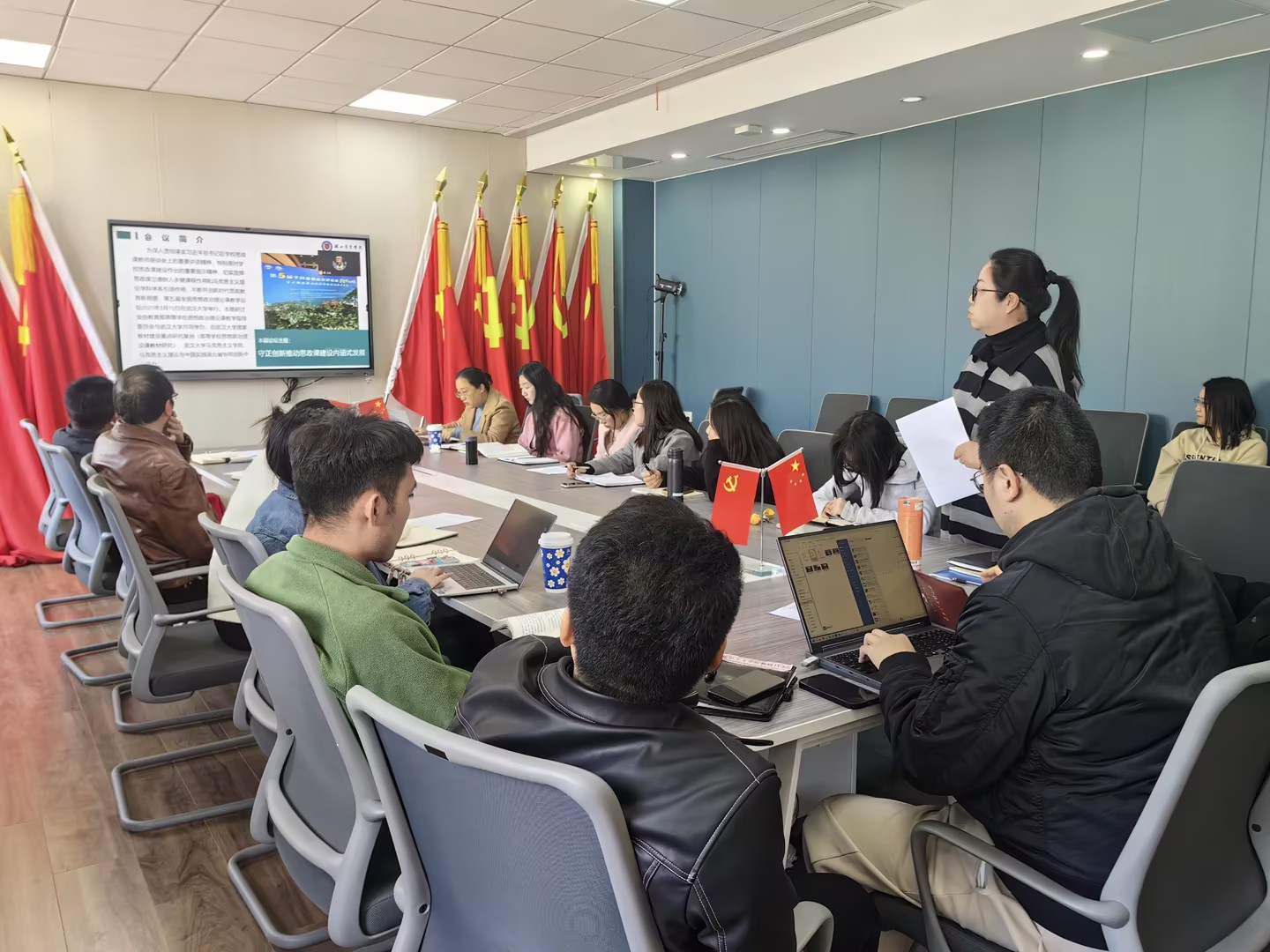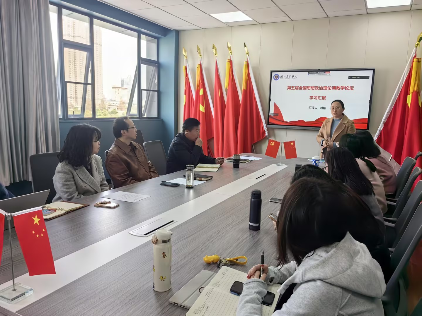 随后,刘艳老师、梅媛老师围绕学习贯彻习近平总书记“3·18”重要讲话精神,结合最近参加“第五届全国思想政治理论课教学论坛”谈了参会的感悟。焦丽丽老师就参加学校举行的“第五届教师教学创新大赛”向大家详细介绍了参赛的心得体会。