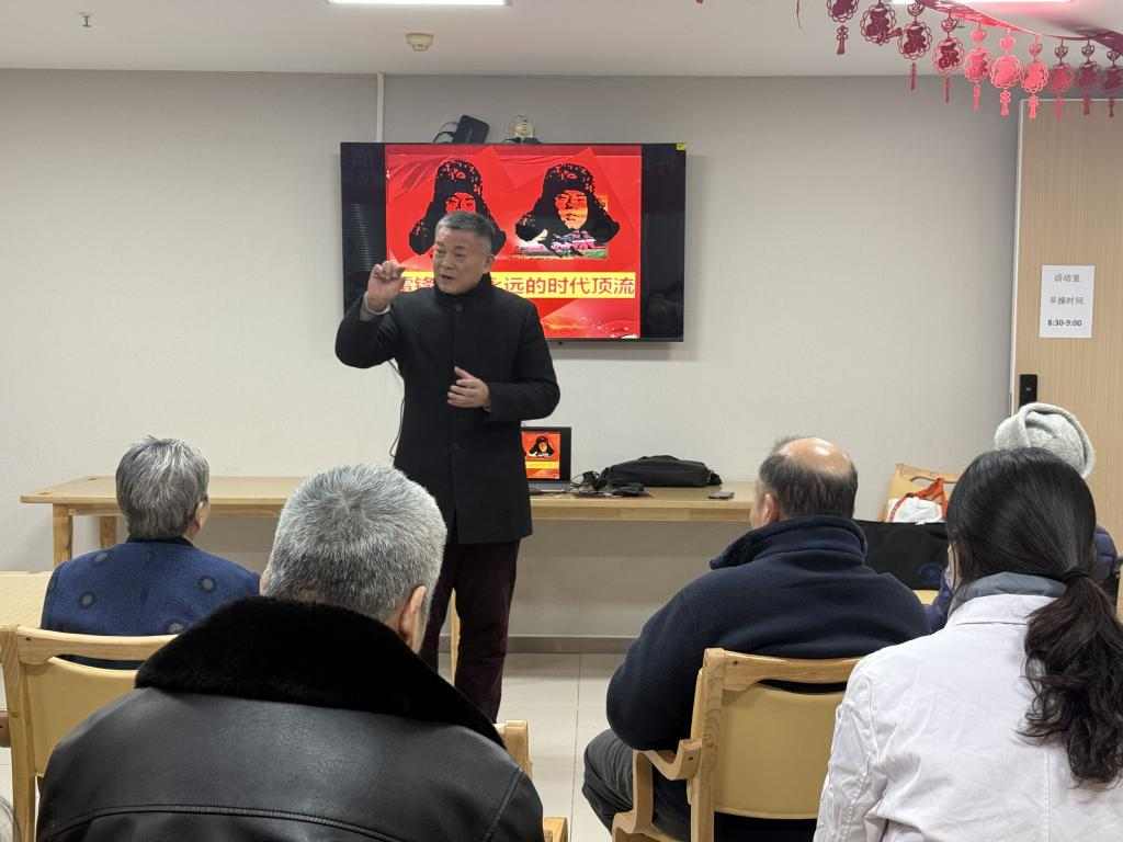 ▲孔波老师在武汉中建综合养老服务中,为老人、护工们宣讲“雷锋精神”