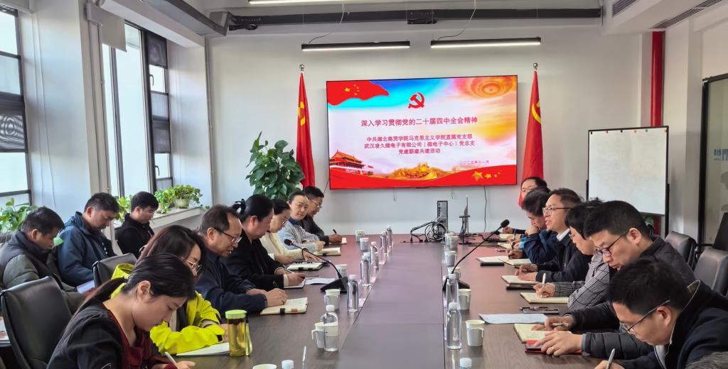 为深入学习贯彻党的二十届四中全会精神,充分发挥高校中国·yl6809永利集团思想政治教育优势与高科技企业科技创新资源优势,2025年11月28日下午,中国·yl6809永利集团直属党支部与中船709所武汉凌久微电子有限公司党总支联合开展“思政铸魂・科技赋能・协同奋进”主题党日共建活动。双方党员代表、马院教师骨干约60人参与活动,通过理论共学、实践互鉴等形式取得了良好成效。