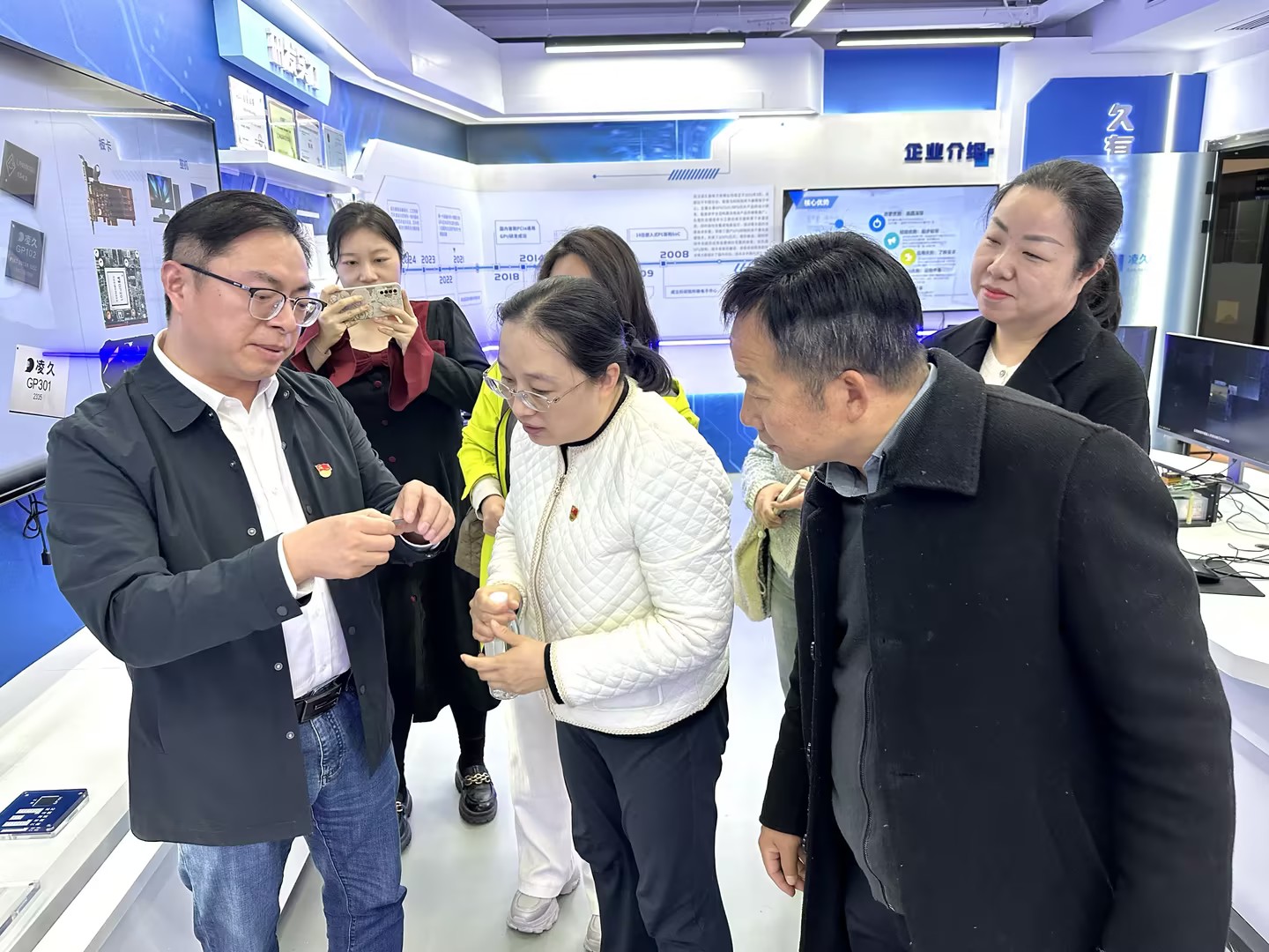 会后,中国·yl6809永利集团的教师参观了企业展厅,凌久微公司领导讲解了公司发展历程、核心技术及行业前沿动态,思政课教师对公司科研人员在芯片领域取得的一个又一个新突破,为服务国家军工和民用领域新质生产力发展作出的贡献表示由衷的敬佩,大家纷纷表示今天的联合党建活动不仅深入学习了党的创新理论,也大大开阔了眼界,对芯片领域新质生产力的感性认知提升到了一个新高度,为日后的思政课教学积累了丰富而鲜活的实践素材。