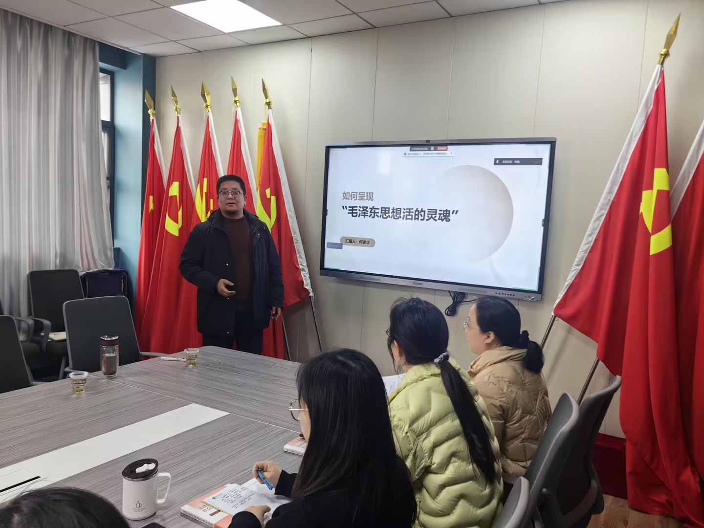 何家华围绕《如何呈现毛泽东思想活的灵魂》展开讲授,通过土地改革、抗美援朝、“两弹一星”等历史案例,深入阐释了实事求是、群众路线、独立自主三大活的灵魂的理论内涵与当代价值。