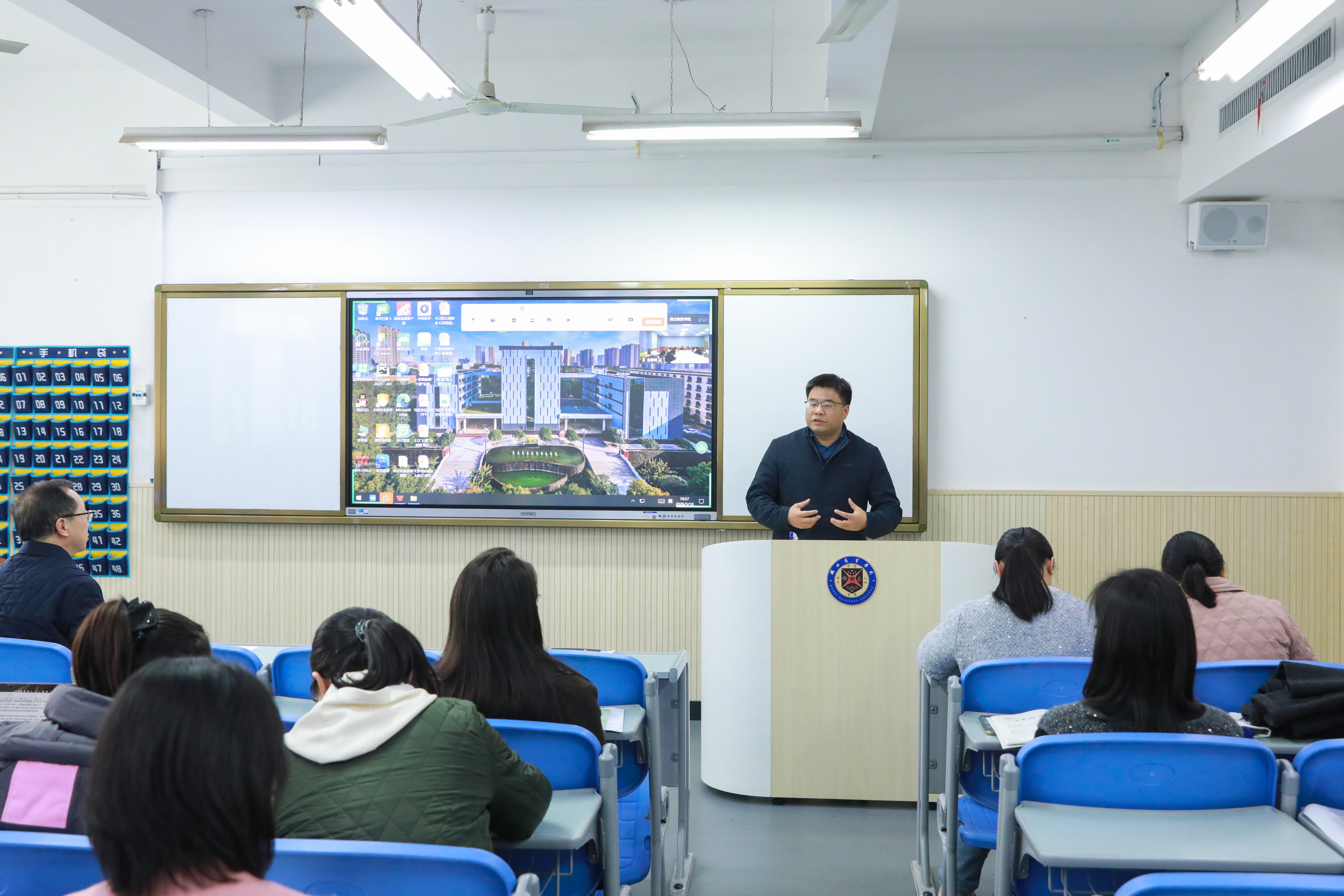 程胜军副校长结合习近平总书记对思政课教师的“六要”要求和“八个相统一”原则,向与会教师提出三点要求。他指出,思政课教师首先要苦练教学基本功,把课堂组织、课件制作、学生管理等基本功练扎实;其次要做到“真讲真懂真信真用”,面对“05后”数字时代原住民学生,要善于引导培养学生有大格局,筑牢信仰之基,必须首先把课“讲准”;三是要提升业务能力把课堂“掌握在自己手中”,教师必须读原著、悟原理、学原文,用大量阅读贯通思维逻辑、理论逻辑,才能指导实践逻辑,他勉励新入职教师通过“领导评、同事帮、自己悟”尽快站稳讲台。