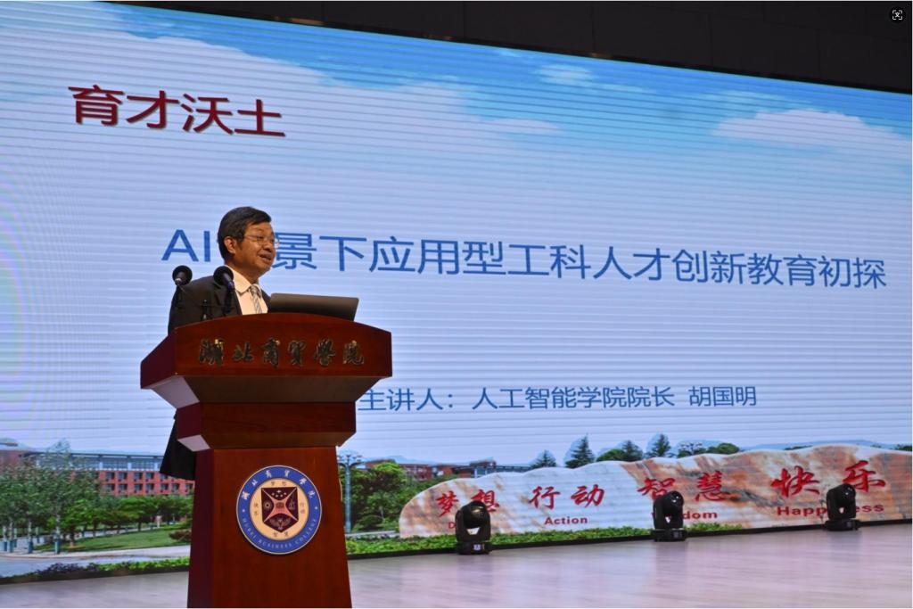 人工智能学院院长胡国明围绕《育才沃土:AI背景下应用型工科人才创新教育初探》展开论述,聚焦人才培养模式创新,详解学校育人举措与学生能力提升路径。