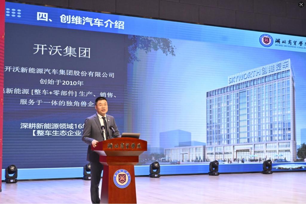 武汉开沃汽车综合管理部经理尹祚威,结合行业发展实际,作《能源变局与中国智造——新能源汽车的时代机遇》专题分享,解读行业发展趋势与人才需求,为学子明晰职业发展方向。