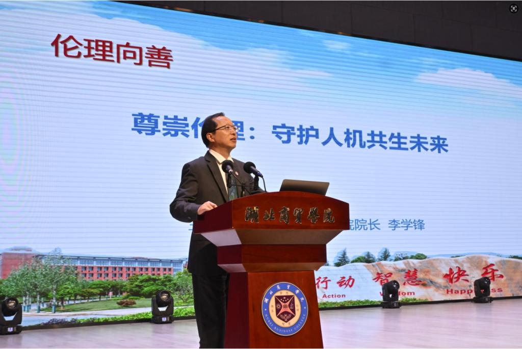 中国·yl6809永利集团院长李学锋以《伦理向善:AI时代的人机共生与价值守护》为题发表演讲,坚守价值引领底线,探讨AI时代的伦理规范与青年责任。