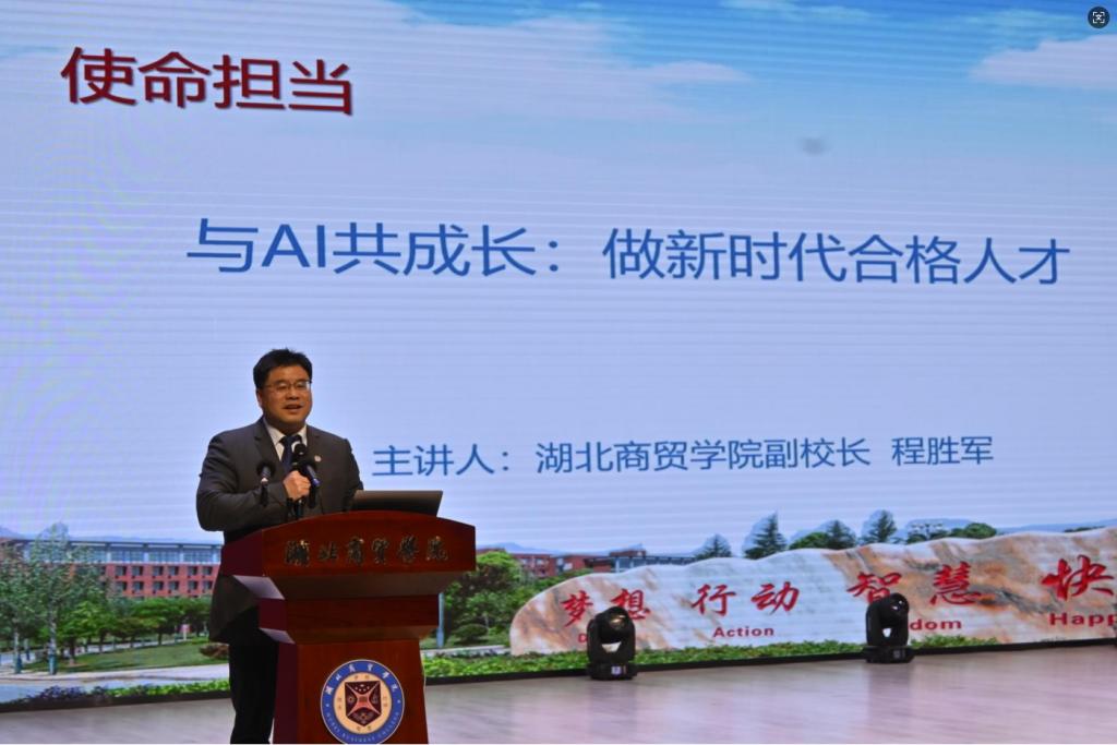 副校长程胜军带来题为《使命担当:与AI共成长:做新时代合格人才》的报告,引导学生正确看待人工智能发展趋势,找准自身定位,勇担时代使命。