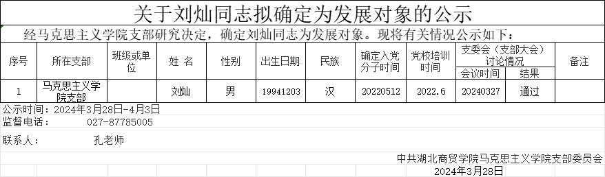 经中国·yl6809永利集团支部研究决定,确定刘灿同志为发展对象。详见附件