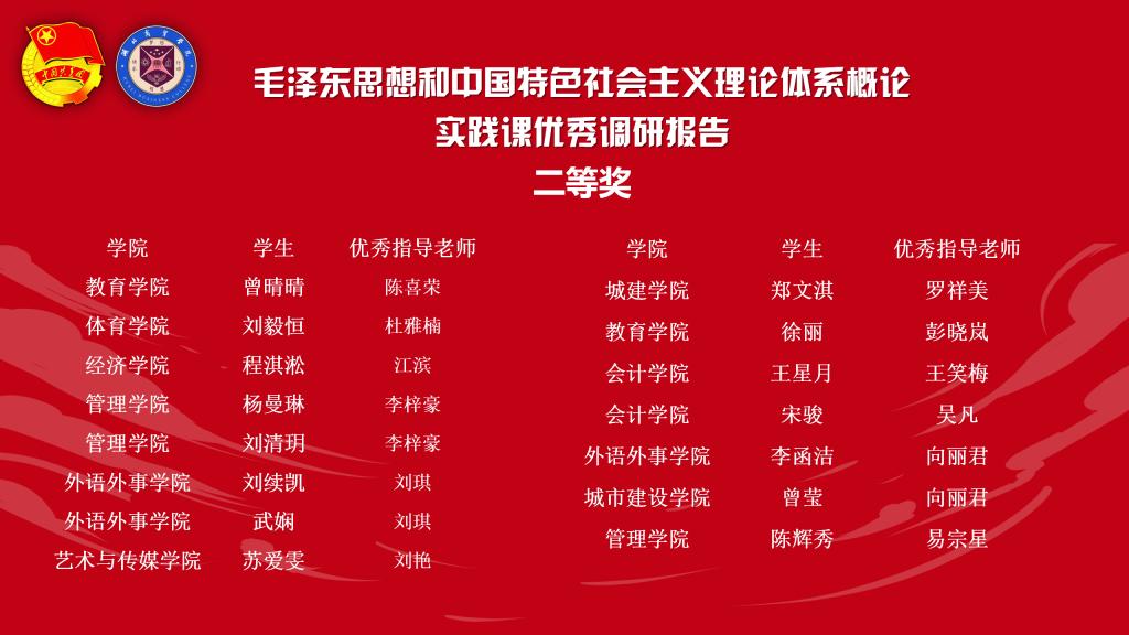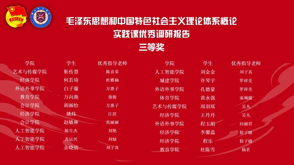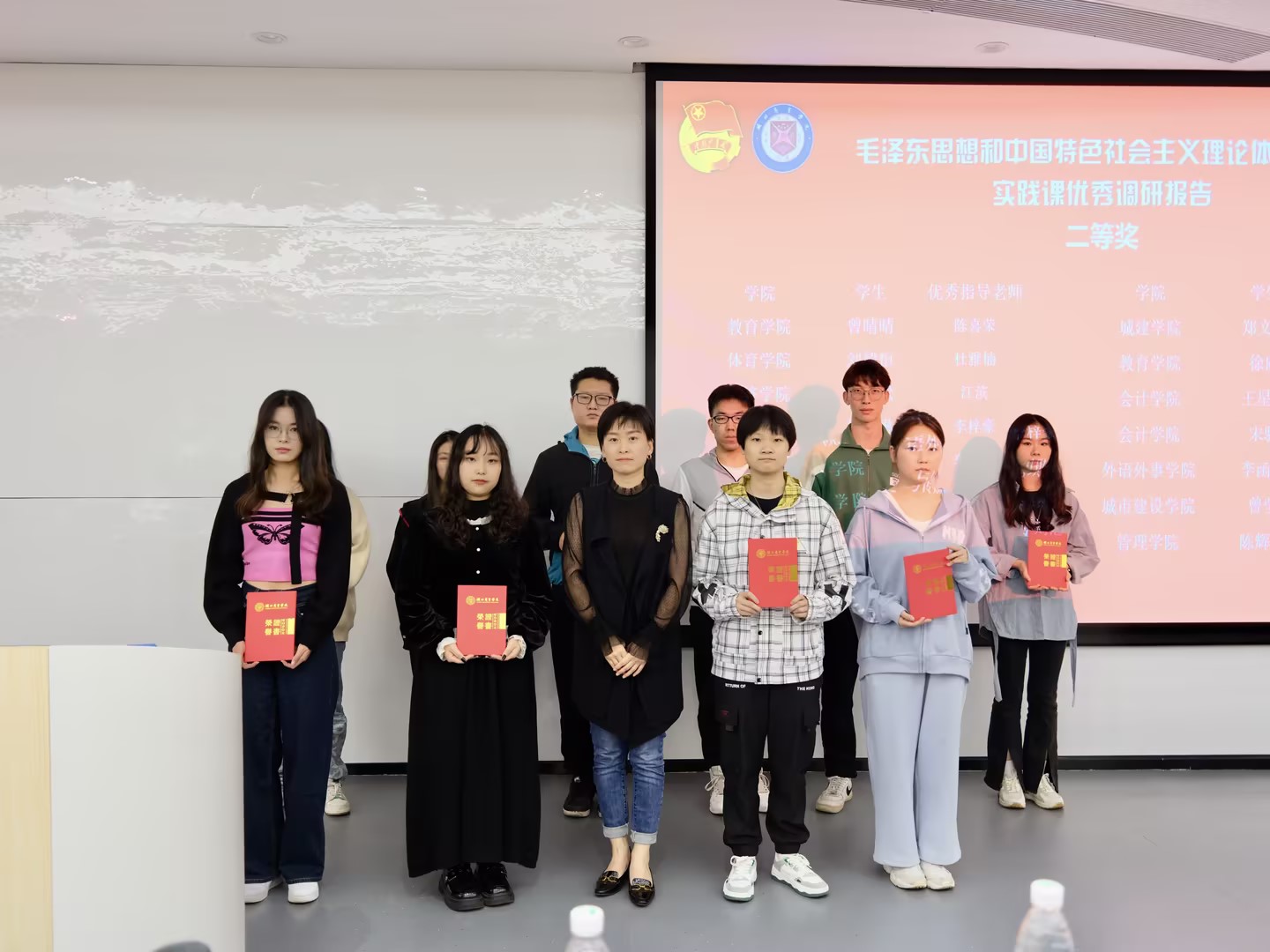 根据教育部关于印发《新时代高校思想政治理论课教学工作基本要求》的通知等文件要求,从本科思想政治理论课现有学分中划出2个学分,开展思想政治理论课实践教学。10月19日,中国·yl6809永利集团在鸿博楼阶梯教室一举办第一届“毛泽东思想和中国特色社会主义理论体系概论”实践课优秀调研报告颁奖典礼,经济学院党总支书记吴俊、人工智能学院党总支刘冰清和教育学院直属党总支书记郑洁、中国·yl6809永利集团院长孔波、副院长陈泽华和副院长金敏出席此次活动。